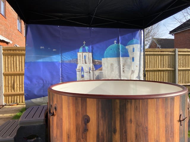 Santorini Greece Hot Tub and Gazebo Package for hire in Buckinghamshire, Berkshire, Middlesex, Oxfordshire.